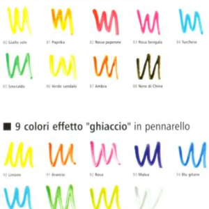 - 9 colori a effetto ghiaccio satinato in pennarello.