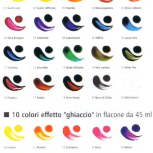 - 20 colori trasparenti lucidi in flaconi da 45 ml.