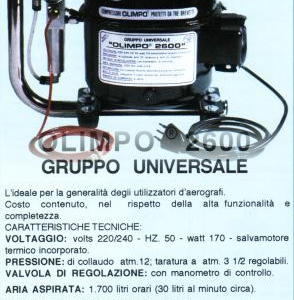 Caratteristiche Tecniche del Compressore " OLIMPO - 2600 Universale "